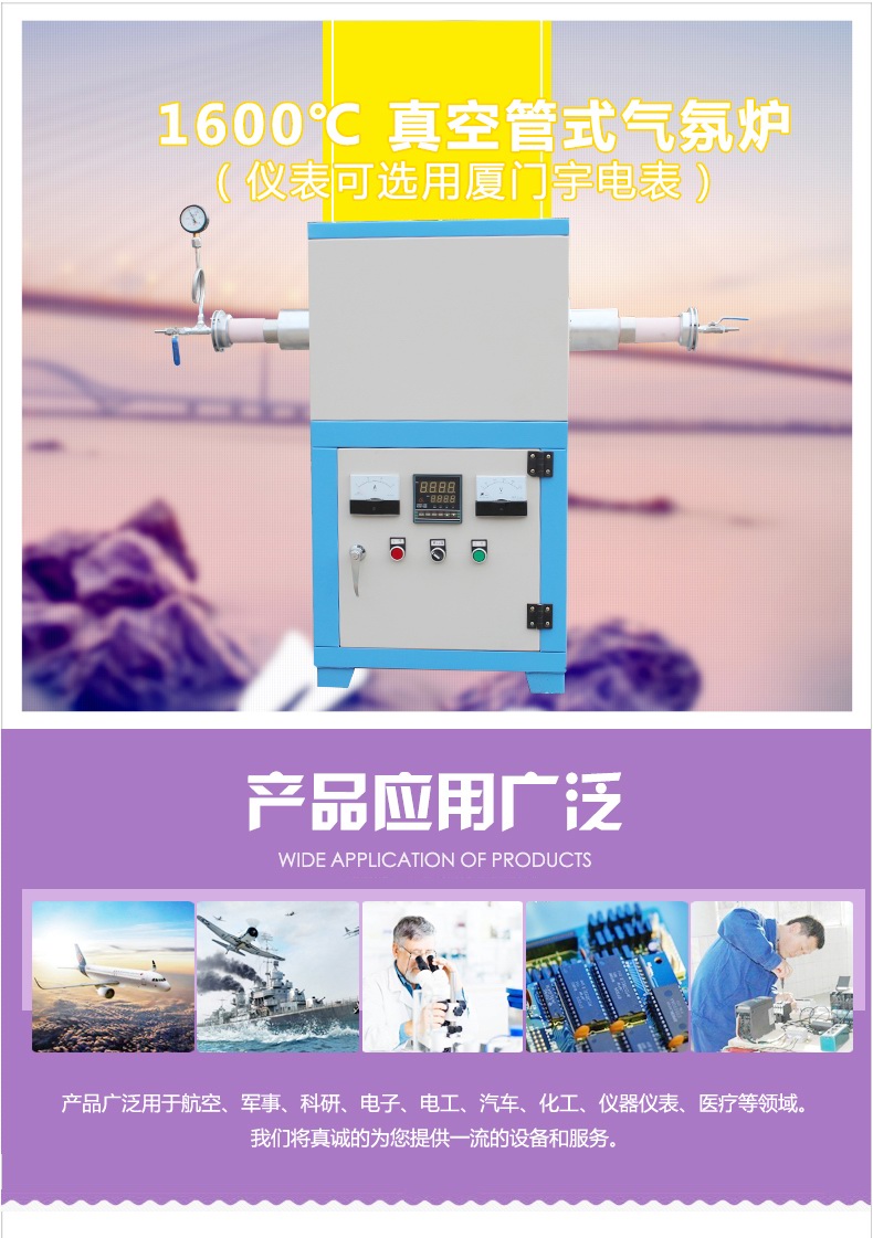 一、用途 本系列真空管式氣氛爐為周期作業(yè)時,額定溫度為1600℃,供實驗室、科研單位、工礦企業(yè)做在低真空狀態(tài)下或氣氛保護(hù)下熱處理加熱之用。 二、結(jié)構(gòu)簡介 1.外殼采用鋼板這邊焊接而成,外表靜電噴涂,美觀大方。爐膛采用氧化鋁陶瓷纖維材料制成,加熱元件為硅鉬棒。工作室為優(yōu)質(zhì)高密···