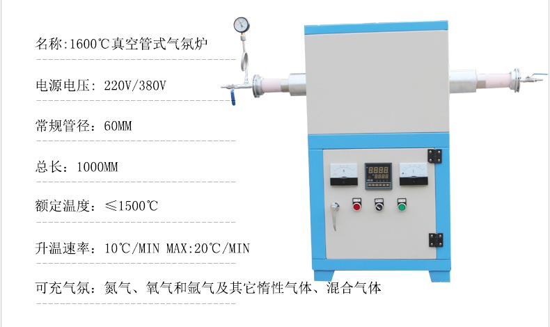 本系列真空管式氣氛爐為周期作業(yè)時,額定溫度為1600℃,供實驗室、科研單位、工礦企業(yè)做在低真空狀態(tài)下或氣氛保護(hù)下熱處理加熱之用。